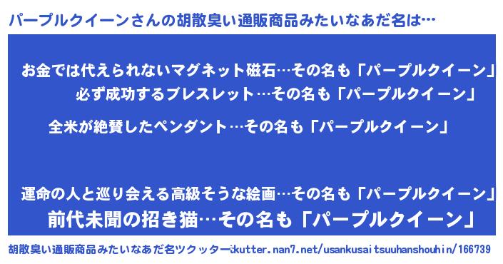| 意味不明あだ名 | 『とにかく怪しいパープルクイーン』 |