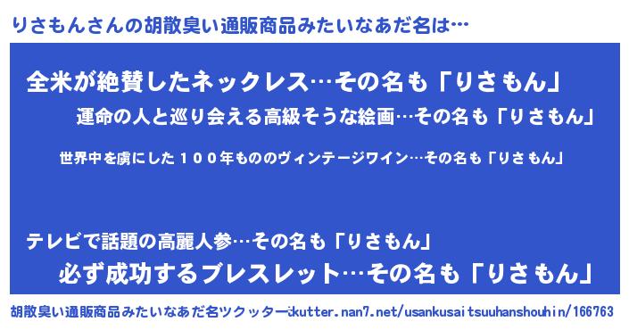 | 欧米人風あだ名 | 『アンジェラ・りさもん』 |