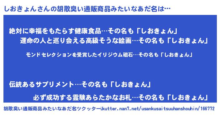 | ヘコむあだ名 | 『しおきょん(笑)』『しおふぇ~』 |