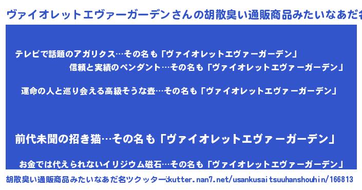| 意味不明あだ名 | 『ヴァイオレットエヴァーガーデンフォーエバー』 |