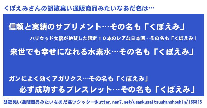 | ヘコむあだ名 | 『くぼえみ(苦笑)』『くぼぷりん』 |