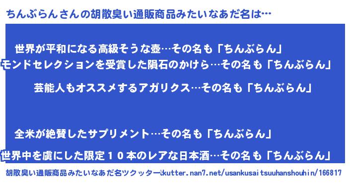 | 意味不明あだ名 | 『自称ちんぶらん』 |