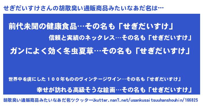| 意味不明あだ名 | 『自称せぎだいすけ』 |