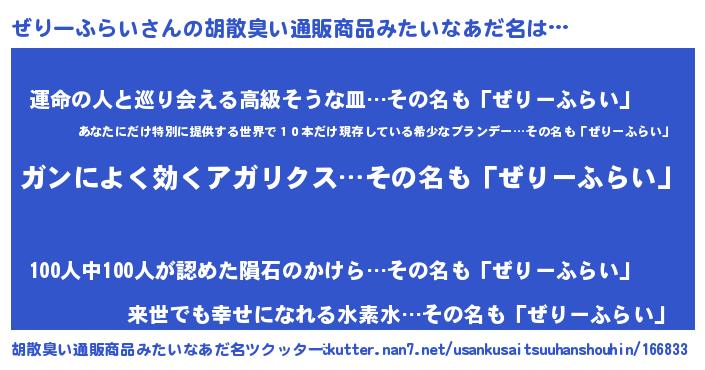 | 女子向けラノベタイトル風あだ名 | 『ぜりーふらいなんてお断りですっ。』 |
