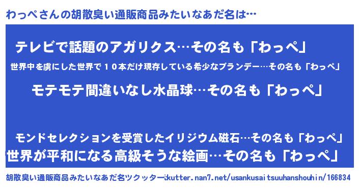 | 意味不明あだ名 | 『ペロリンわっぺ』『自称わっぺ』 |