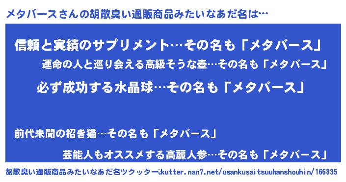| 恥ずかしいあだ名 | 『プリティーメタバース』『メタリンリン』 |
