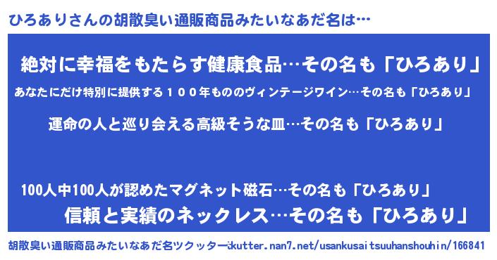 | 意味不明あだ名 | 『ひろありフォーエバー』 |