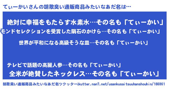 | ヒーロー風カッコイイあだ名 | 『ウルトラてぃーかいマン』 |
