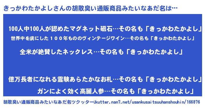 きっかわたかよしさんの胡散臭い通販商品みたいなあだ名をツクッター!