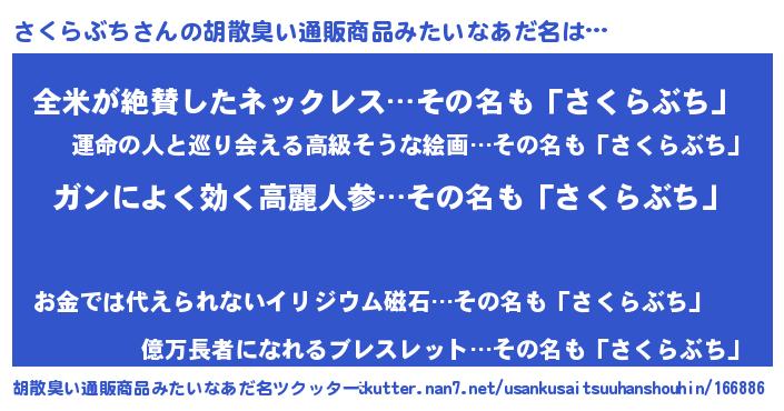 さくらぶちさんの胡散臭い通販商品みたいなあだ名をツクッター!