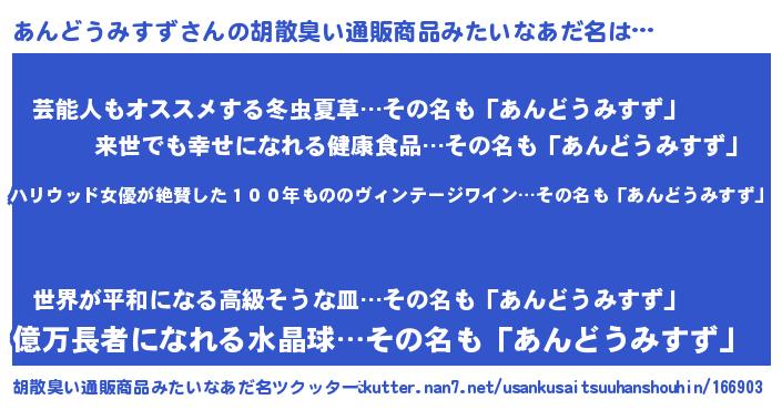 | ヘコむあだ名 | 『あんにー』『あんどうみすず(遠い目)』 |