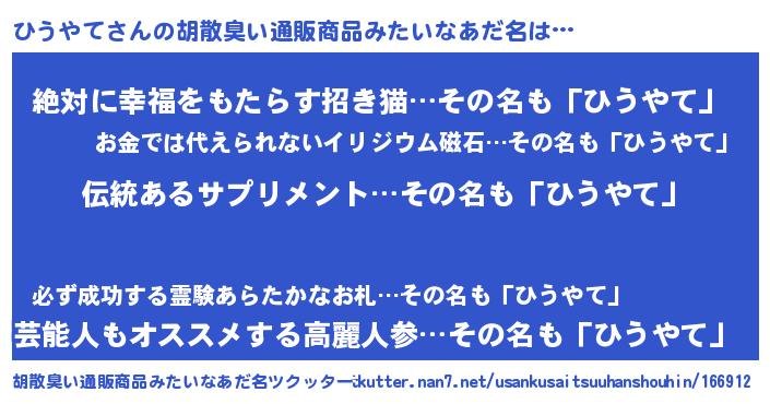 | ヘコむあだ名 | 『ひうを』『ひうやて(笑)』 |