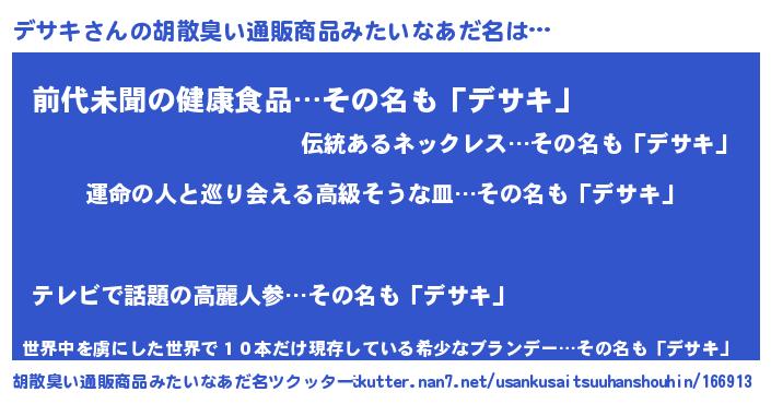 | 意味不明あだ名 | 『デサキフォーエバー』『永久保存デサキ』 |