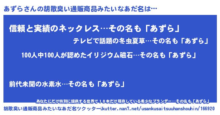 | 意味不明あだ名 | 『眠気覚ましガムあずら味』『自称あずら』 |