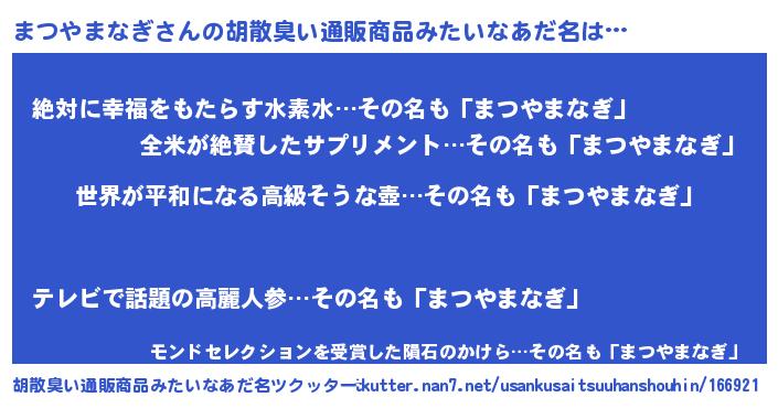 | 意味不明あだ名 | 『まつやまなぎフォーエバー』 |