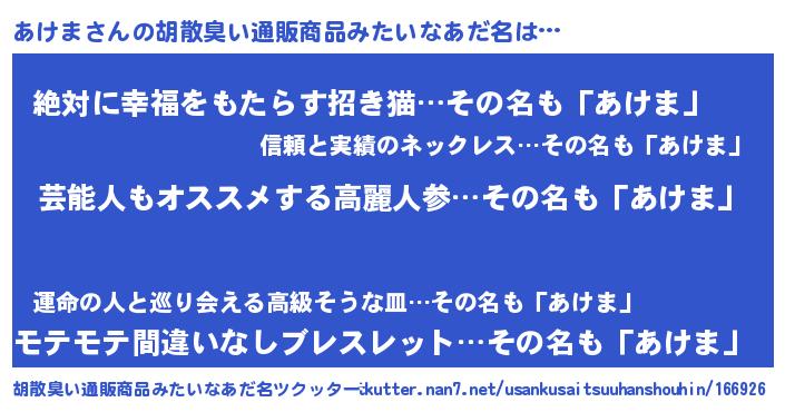 あけまさんの胡散臭い通販商品みたいなあだ名をツクッター!