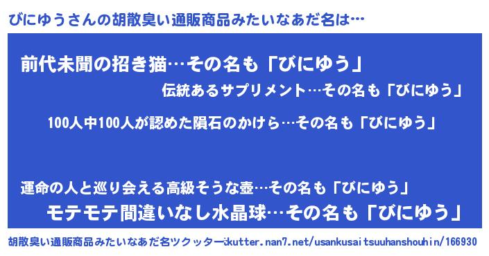 | 料理風あだ名 | 『びにゆうのトマト煮』『びにゆうごはん』 |