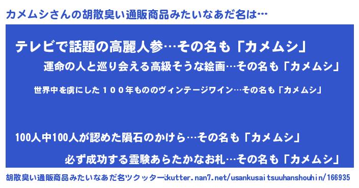 | ヒーロー風カッコイイあだ名 | 『仮面カメダー』『最強戦士カメムシ』 |