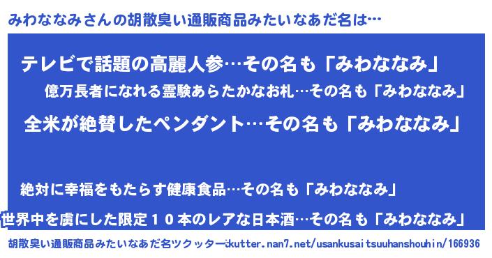 | 肩書あだ名 | 『みわななみ少将』『みわななみ団長』 |
