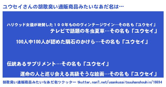 ヘコむあだ名 | 『牛乳』『ユウお』『ユウにゅー』 |