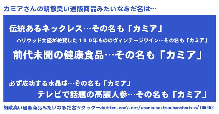 | 意味不明あだ名 | 『永久保存カミア』『自称カミア』 |