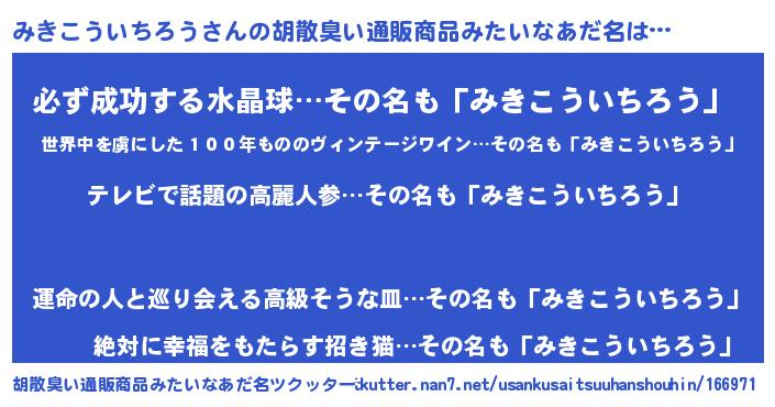 | 意味不明あだ名 | 『自称みきこういちろう』 |
