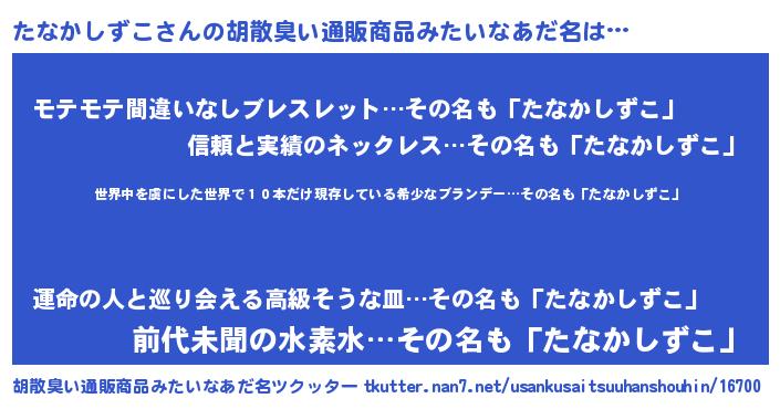 | ヘコむあだ名 | 『たなっふぃ~』『たなかしずこ(笑)』 |