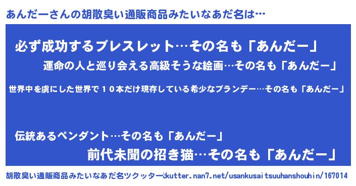 | ヘコむあだ名 | 『あんっふぃ~』『あんだー(笑)』 |