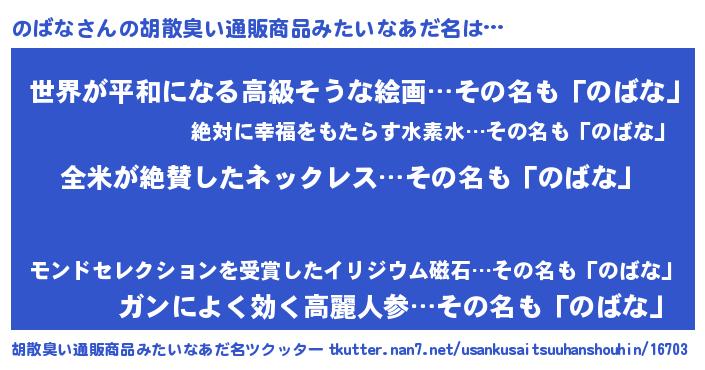 | 意味不明あだ名 | 『とにかく怪しいのばな』『自称のばな』 |