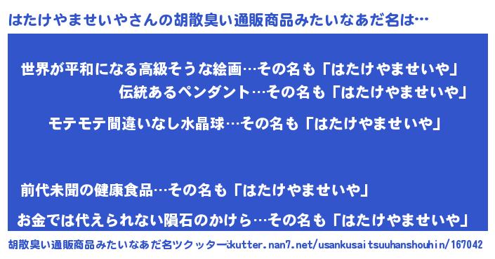 | 肩書あだ名 | 『はたけやませいや店長』 |
