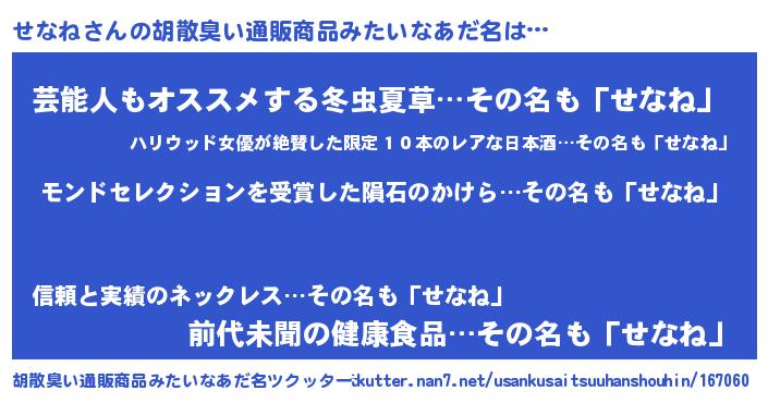| ヘコむあだ名 | 『せなね(遠い目)』『せなっぺ』 |