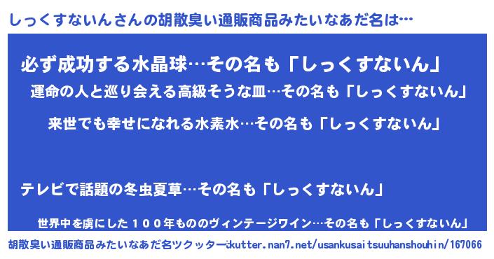 | 意味不明あだ名 | 『永久保存しっくすないん』 |