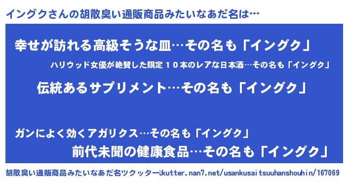 | 意味不明あだ名 | 『とにかく怪しいイングク』 |