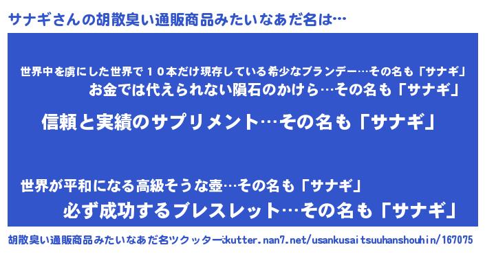 | 恥ずかしいあだ名 | 『サナリンリン』『プリティーサナギ』 |