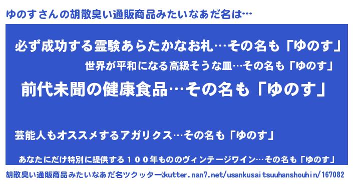 | ヘコむあだ名 | 『ゆのす(爆)』『ゆのっふぃ~』 |