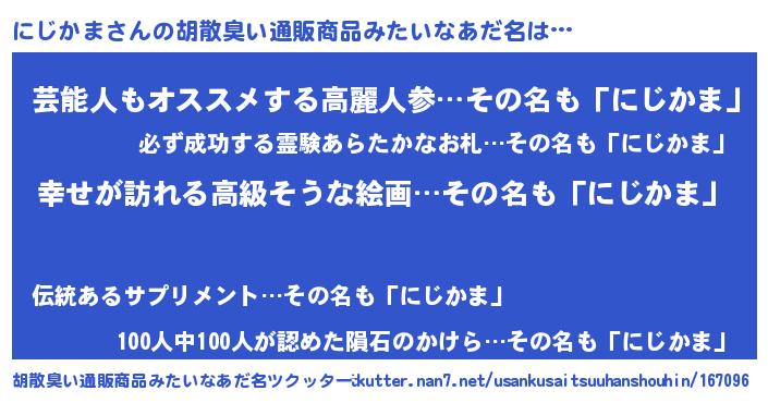 にじかまさんの胡散臭い通販商品みたいなあだ名をツクッター!