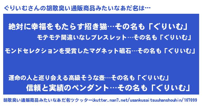 | ヒーロー風カッコイイあだ名 | 『天空の使者ぐりいむ』『ネオグリイム』 |