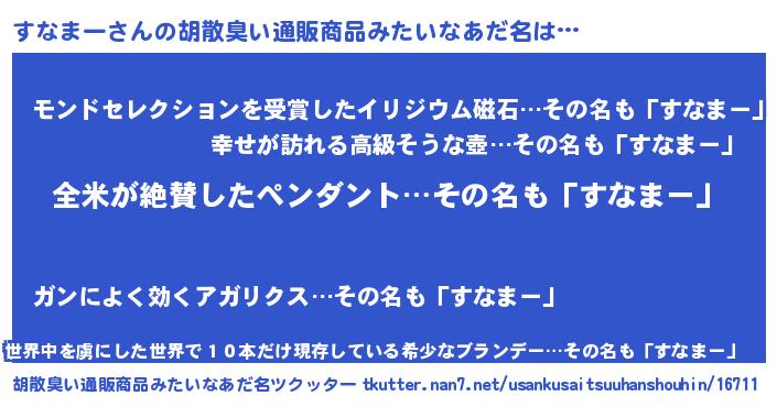 | 意味不明あだ名 | 『とにかく怪しいすなまー』 |