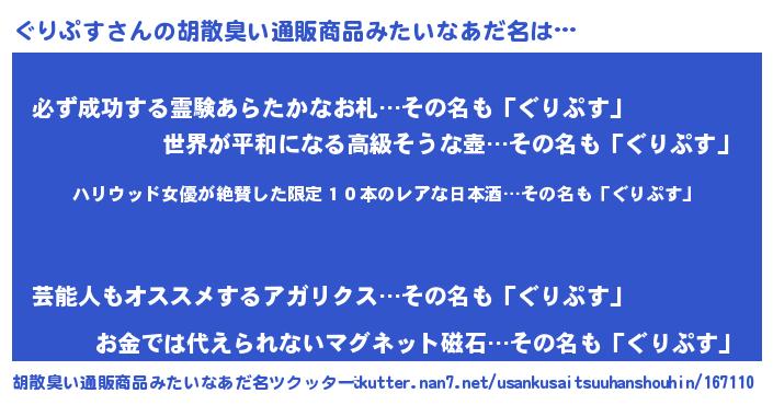 | 意味不明あだ名 | 『住所不定無職ぐりぷす(59歳)』 |
