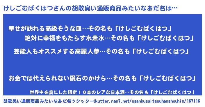 | 意味不明あだ名 | 『自称けしごむばくはつ』 |