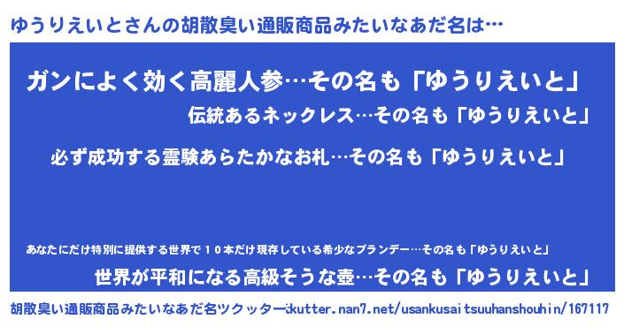 | 伝説のあだ名 | 『伝説のスナイパーゆうりえいと』 |