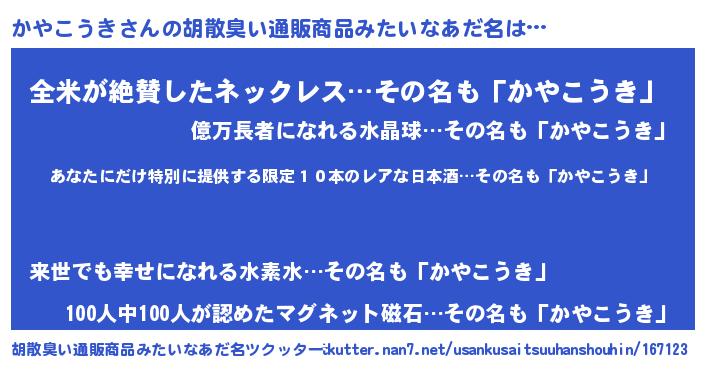 | ヘコむあだ名 | 『かやっ子』『かやにゅー』 |