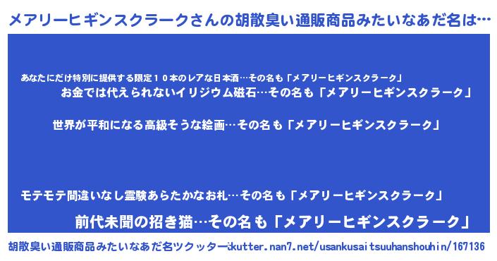 | ヒーロー風カッコイイあだ名 | 『ウルトラメアリーヒギンスクラークマン』 |