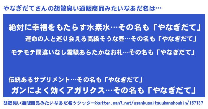 | ヘコむあだ名 | 『やなもー』『やなぎだて(苦笑)』 |