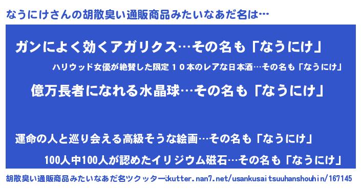 | 意味不明あだ名 | 『ペロリンなうにけ』『自称なうにけ』 |