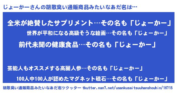 | 意味不明あだ名 | 『永久保存じょーかー』『自称じょーかー』 |