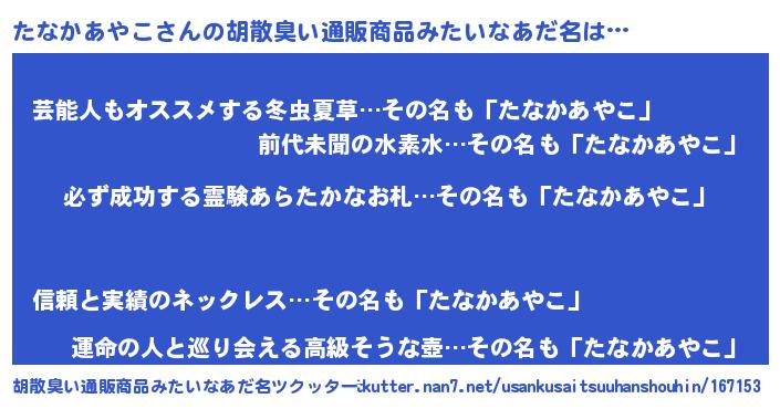 | 伝説のあだ名 | 『伝説のスナイパーたなかあやこ』 |