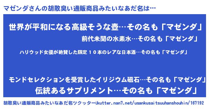 | 意味不明あだ名 | 『住所不定無職マゼンダ(43歳)』 |