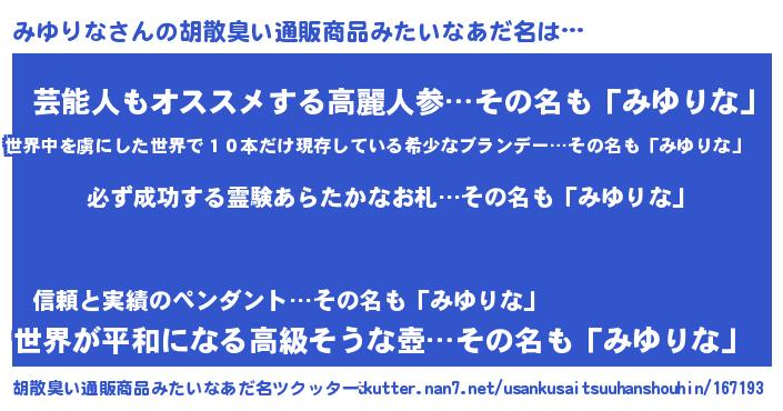 | 意味不明あだ名 | 『ペロリンみゆりな』『自称みゆりな』 |