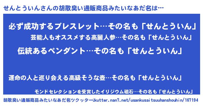 | 恥ずかしいあだ名 | 『センリンリン』『ボンバーヘッドせん』 |
